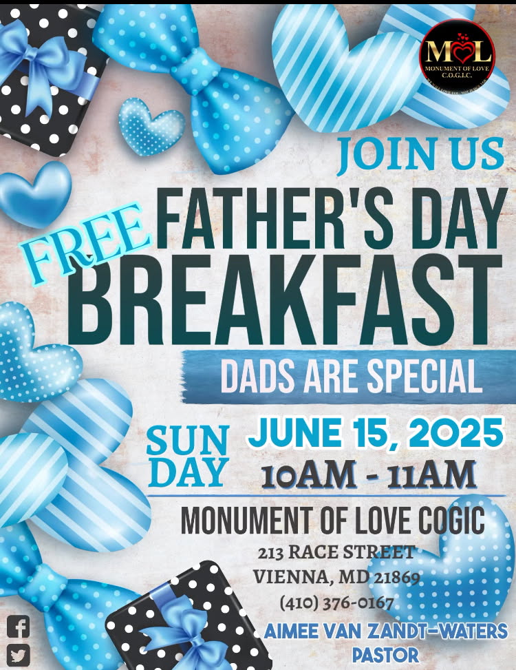 Join us for a special Father’s Day Breakfast—honoring all fathers and father figures. RSVP below to save your seat! 🥞👔💙